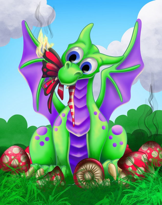 After accidentally stumbling through a circle of mushrooms in a nearby forest these young Dragonlings fell into the world of the fairies. Little did they know that the seemingly simple ring of fungus was anything but simple! They romped through this new mystical land, causing all sorts of mischief and mayhem. Running this way and that they gleefully chased the fairies all over their homeland, giggling as they romped. They had so much fun they decided that Fairyland would be their secret place to run and play. Ever since that day, it is upon the border of Dragondom and Faeryland that the baby dragons go to frolic.